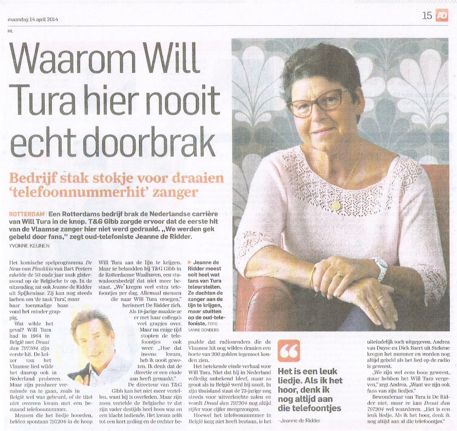 In België was dat een niet bestaand telefoonnummer. In Nederland bleek dat wel het geval. Toen het plaatje ook hier werd uitgebracht werd al snel een Rotterdams bedrijf gek gebeld door mensen die, aangemoedigd door Will Tura, het nummer draaiden en als er opgenomen werd verwachtingsvol vroegen: ‘Will Tura…?’